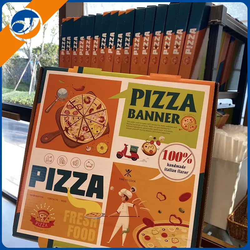 Squisita scatola per pizzaIl processo di stampa personalizzato supporta il ripristino ad alta precisione di logo del marchio, illustrazioni o schemi tematici e migliora il riconoscimento del marchio.